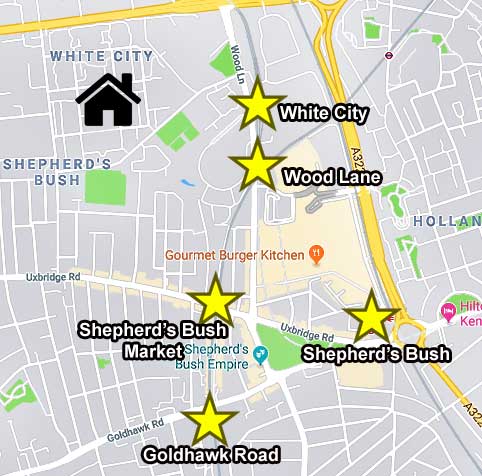 Our serviced rooms are located just 500 meters (7-minute walk) from White City underground station, which serves both the Central line and Hammersmith & City line.
